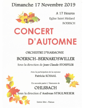 vous donne rendez-vous dimanche 17 novembre 2019 à 17h00 à l’Eglise Saint-Médard de Boersch.