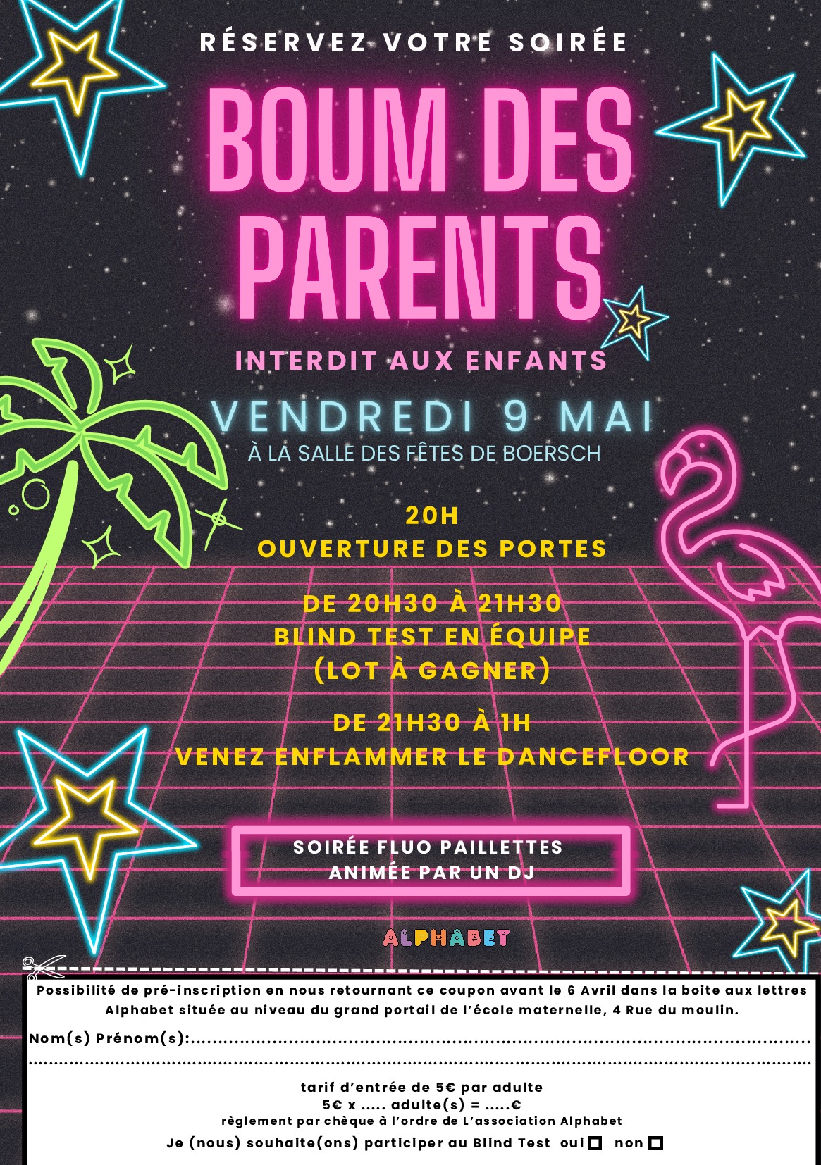 L’association ALPHABET est au regret de devoir annuler la soirée.