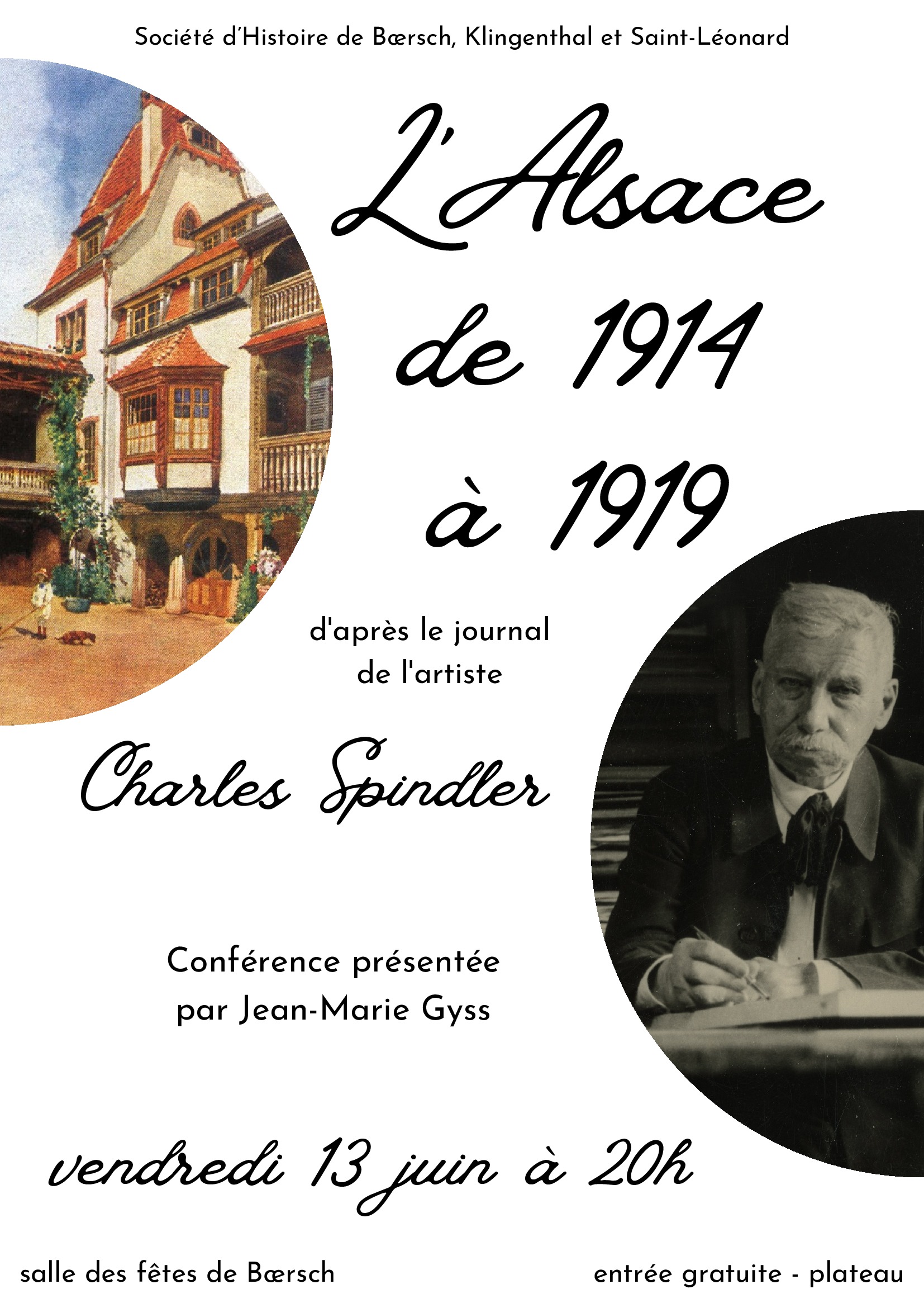 Présentée par Jean-Marie Gyss, elle aura pour thématique L’Alsace de 1914 à 1928 d’après le journal de Charles Spindler.