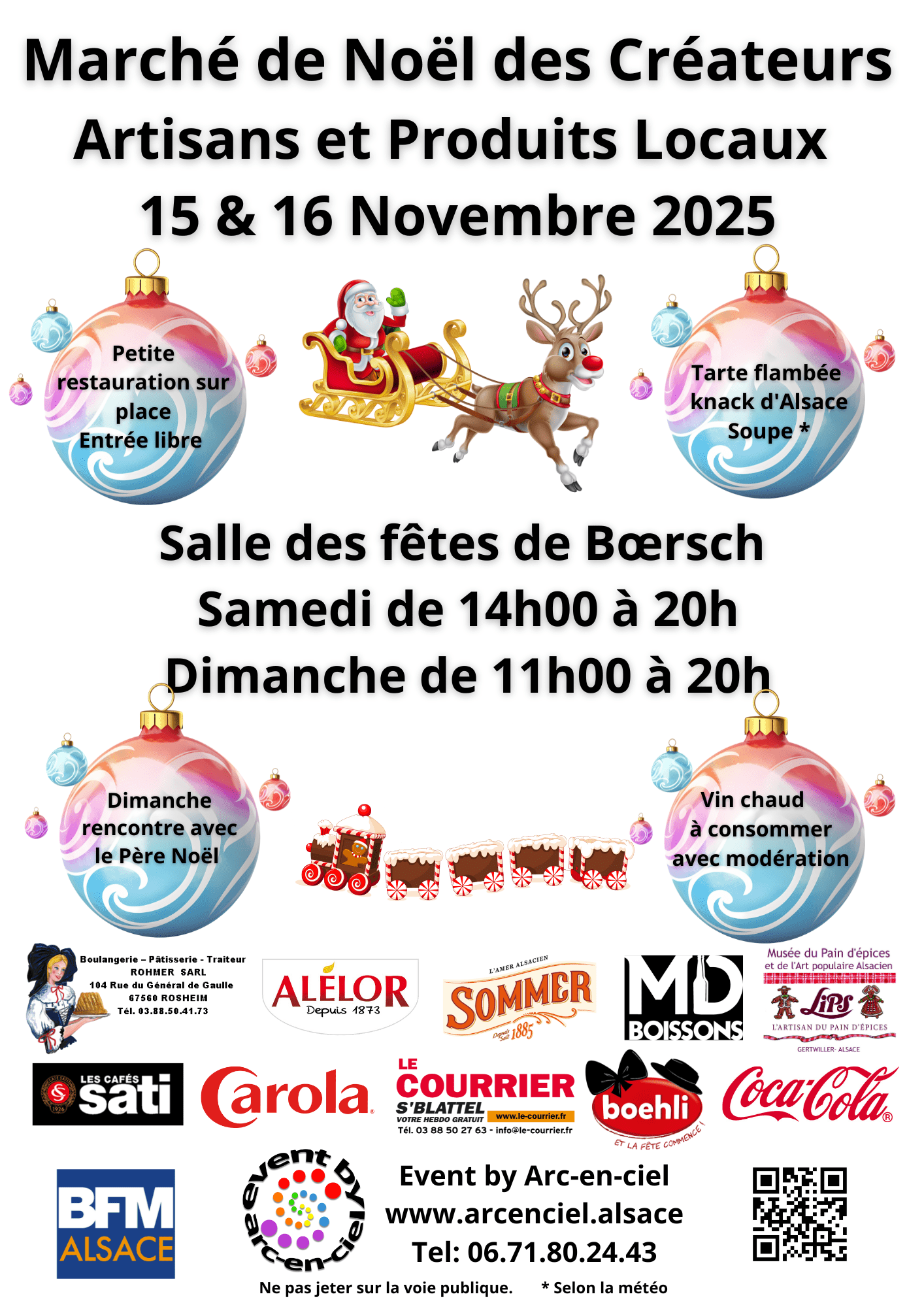 organise son traditionnel Marché de Noël des Créateurs : artisans et produits locaux de Noël à la salle des fêtes de Bœrsch