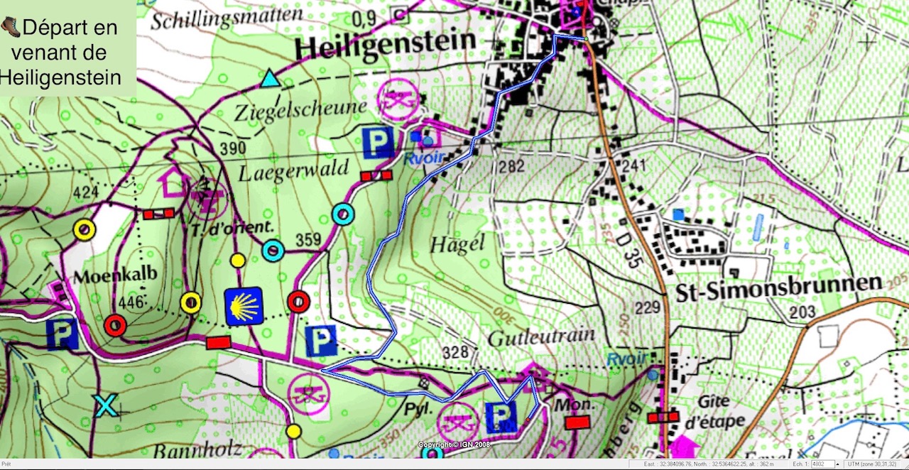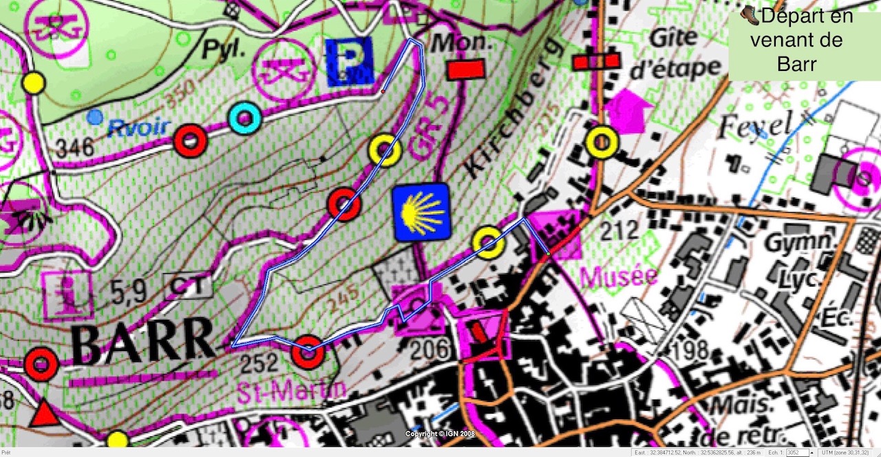 - en venant de Barr, prendre la route qui monte à côté du restaurant La Folie Marco et suivre le tracé (attention, route barrée au cimetière mais passage possible par la cour du temple Protestant).