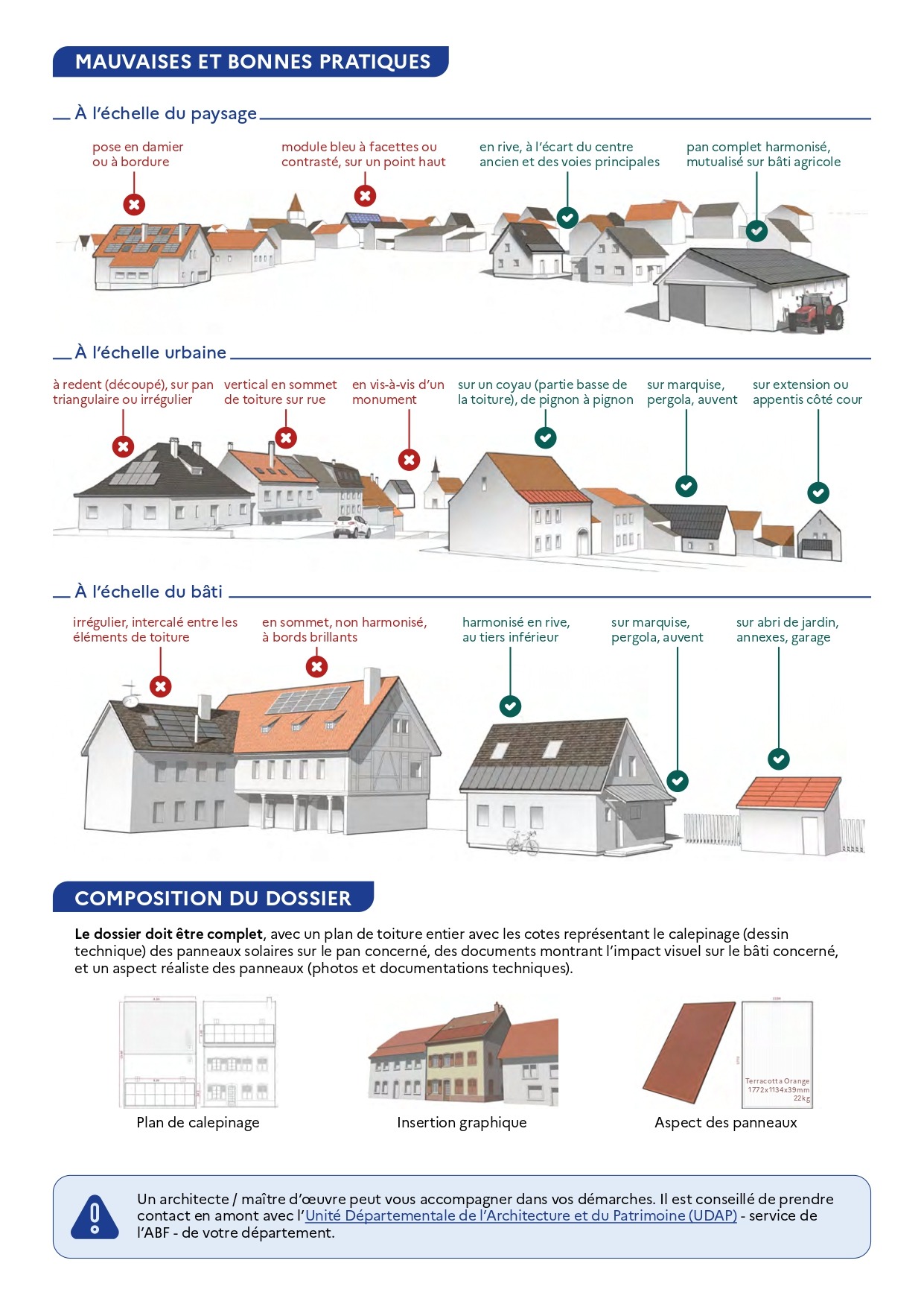 Pour concilier la sauvegarde du patrimoine et l’adaptation aux changements climatiques, voici la fiche conseil produite par l’unité départementale de l’architecture et du patrimoine (UDAP). Elle rassemble les recommandations des architectes des bâtiments de France (ABF).