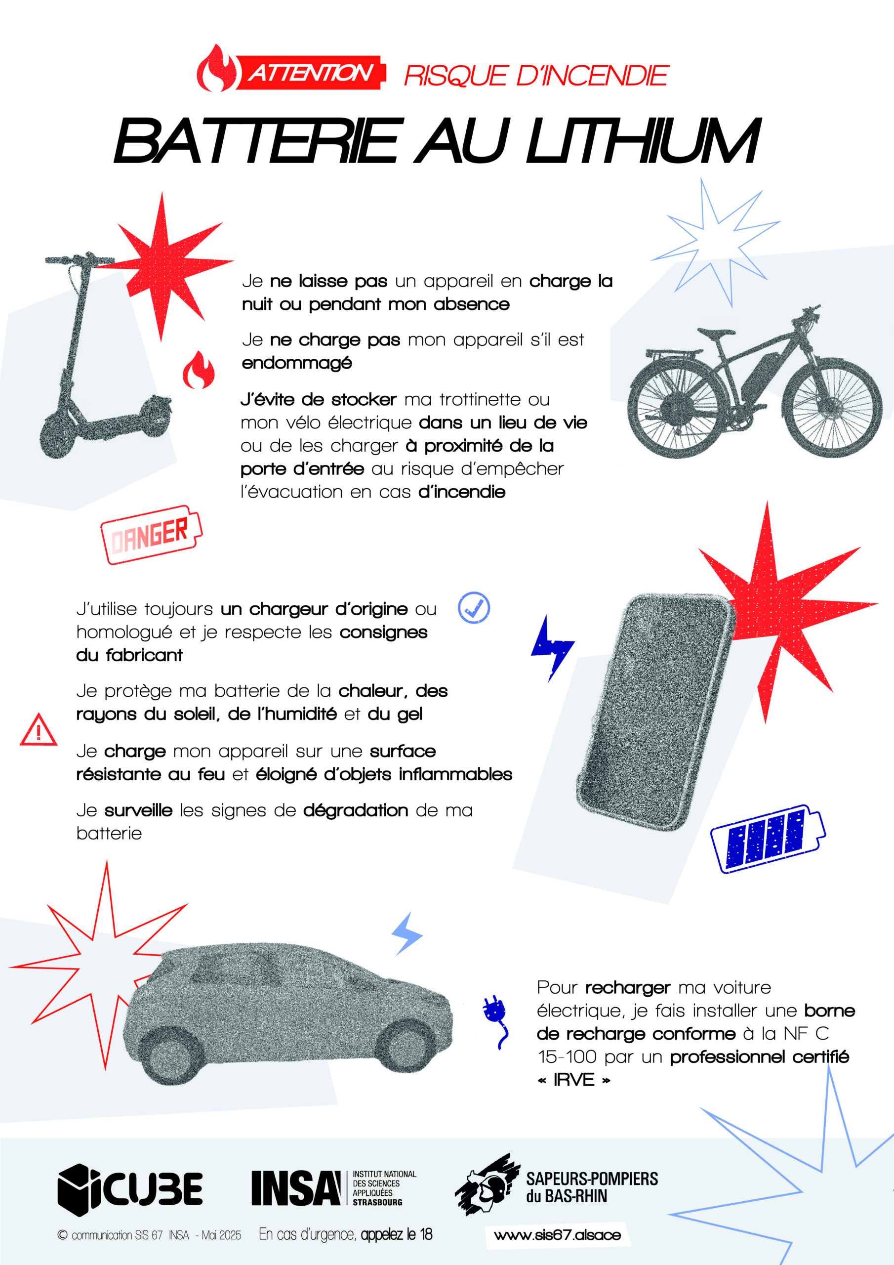 Le service d’incendie et de secours du Bas-Rhin, en association avec l’INSA Strasbourg et le laboratoire ICube, a lancé une campagne de prévention des risques liés aux batteries au Lithium.